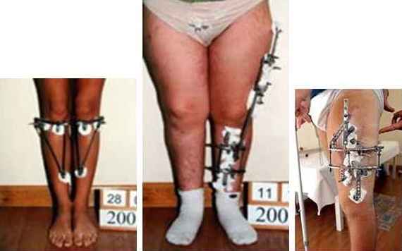"использование стержней в аппарате позволяет совершать косметические операции, поскольку только три точки фиксации каждого аппарата на каждой ноге и после снятие аппарата остаются три незаметные точки> Из Сайта.