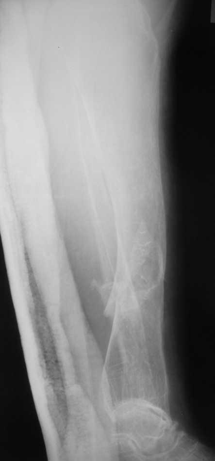 Но даже при малоинвазивной методике лечения применимой для даной больной существуют следующие проблемы: выраженный остеопороз, тонкий кортикал, очень широкий канал.