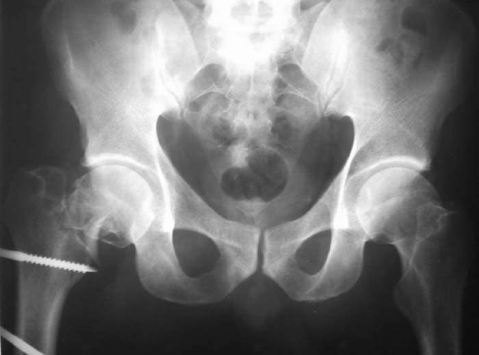 Тактика дальнейшего лечения? С уважением, А.В.Владзимирский Dear colleagues! Male, 44 y.o. Trauma in MVA 22.08.08: open fracture of right femur (middle shaft), close fractures of right elbow and pilon. He was in rural hospital were debridgement and Ilizarov frame for femur were performed. Now, he is in Regional Trauma Hospital. After 18 days of trauma x-ray of pelvis were performed – fracture of right femur neck. Wounds at femur is healing with small points of necrosis. I’ll be very appreciate for your suggestions and opinions about further treatment! Best wishes, Anton Vladzymyrskyy M.D., Donetsk Regional Trauma Center