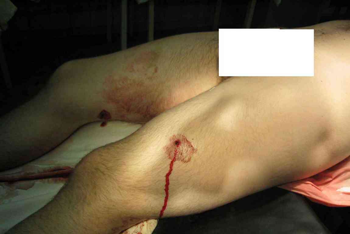 Соматически здоровый 20летний мужчина получил "высокоэнергетическое" ранение левого бедра из автомата Калашникова (5,45 мм).