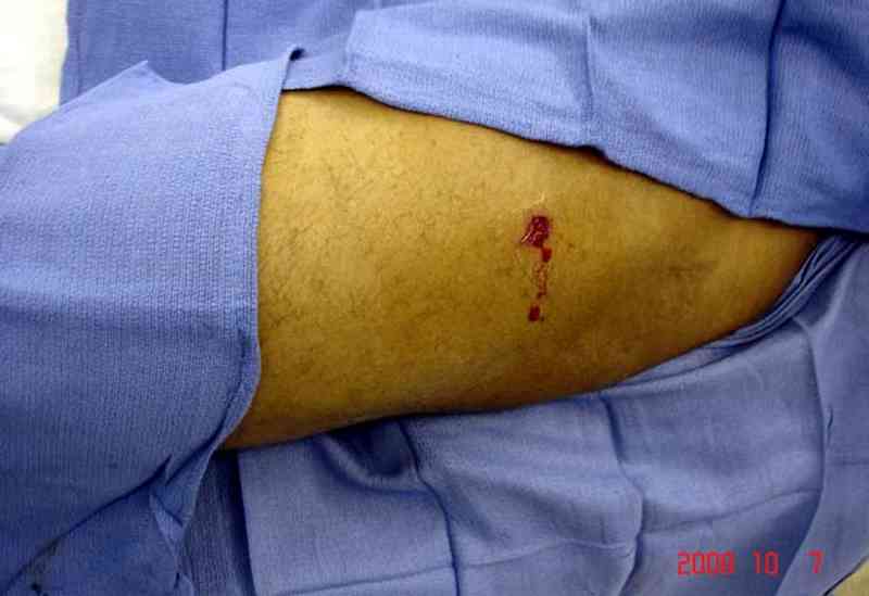 Входное отверстие на Вашей фотографии ничего не означает, если хотите реальную картину этого ранения, сделайте ЯМР раневого канала, и тогда Вы оцените по настоящему, это во первых, а во вторых, о каком остеосинтезе может быть речь в условиях микробного загрязнения?