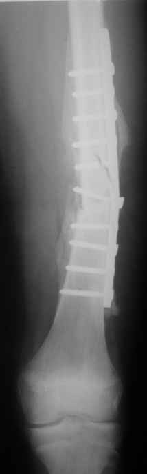 Обратилась девочка 13 ти лет .Два месяца назад после ДТП девочка получила перелом правой бедренной кости в с/3 со смещением. Была прооперирована (СФОС) .П./о период без особенностей. Два дня назад девочка подвернула ногу и услышала хруст в бедре. Подскажите, пожалуйста, тактику дальнейшего лечения. С уважением Ihor. < | >