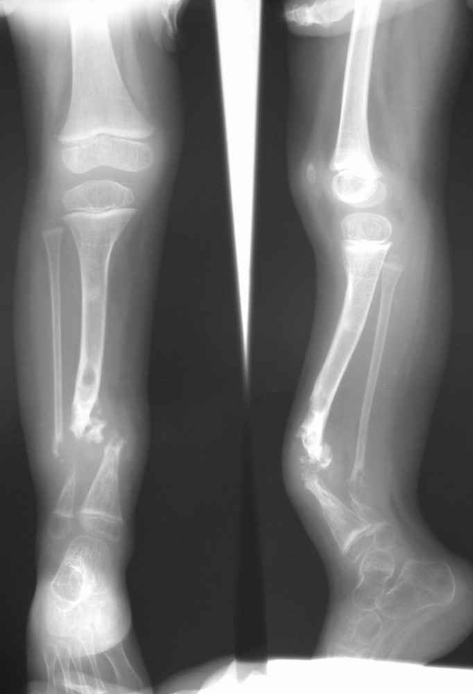 У нас есть ,небольшой опыт лечения пациентов с данной патологией. Мы проводим оперативное лечение с 4-5-ти летнего возраста. Проводим резекцию ложного сустава, рассверливаем канал большеберцовой кости и используем свободный костный трансплантат с малоберцовой кости. Трансплантат вставляем интраосально ,концы б/б кости сближаем и фиксируем пластинкой .Возможно использовать для фиксации и профилактики рецидивов Тitanium elastic nails