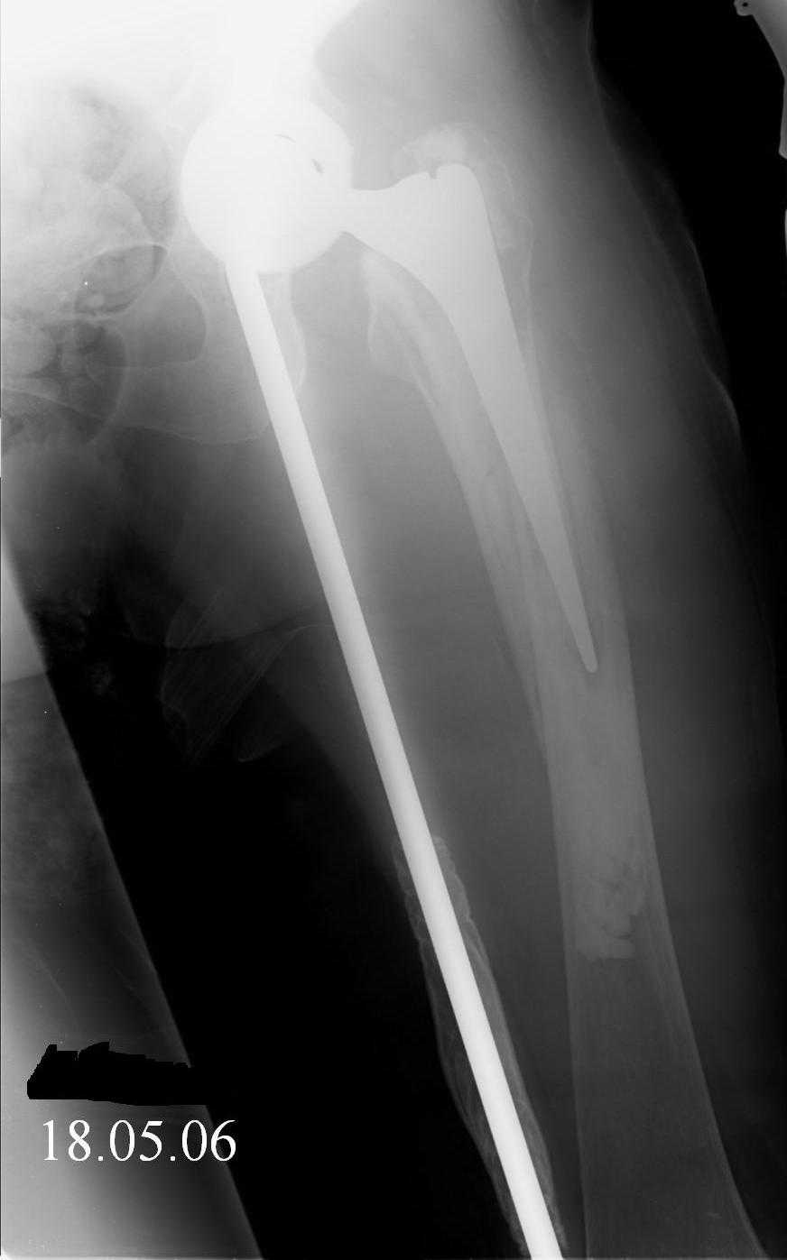 А если через какое-то время все-таки ревизия и замена ножки станут неизбежными (это все-таки представляется скорее возможностью, а не приговором), то ревизионное протезирование уже без перелома диафиза бедра должно быть менее проблемным.