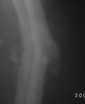 Даже на такой "микро" рентгенограмме видна угловая деформация. В чем проблема сделать снимок бедра на всем протяжении? Боль, скорее всего,