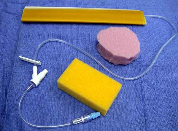 Обычно компании (KCI) для защиты своей продукции устанавливают различные оговорки: размер, давление, цвет, включая губки, пропитанные серебром. Но на практике для вакуумирования поверхности раны, независимо от порозности, можно применить любую губку, главное под пленкой создать отрицательное давление.