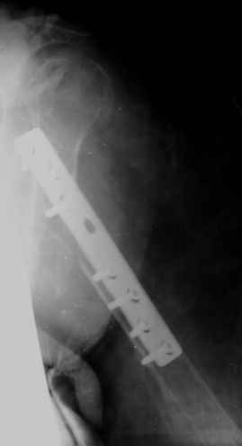 плечевая кость, которая может начать срастаться до расшатывания пластины.