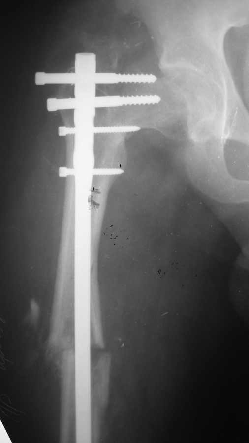 25 октября 2008 вследствие ДТП политравма (мотоциклист): оскольчатый диафизарный перелом правой бедренной кости + чрезвертельный перелом правого бедра ( был диагностирован во время операции, был без смещения).