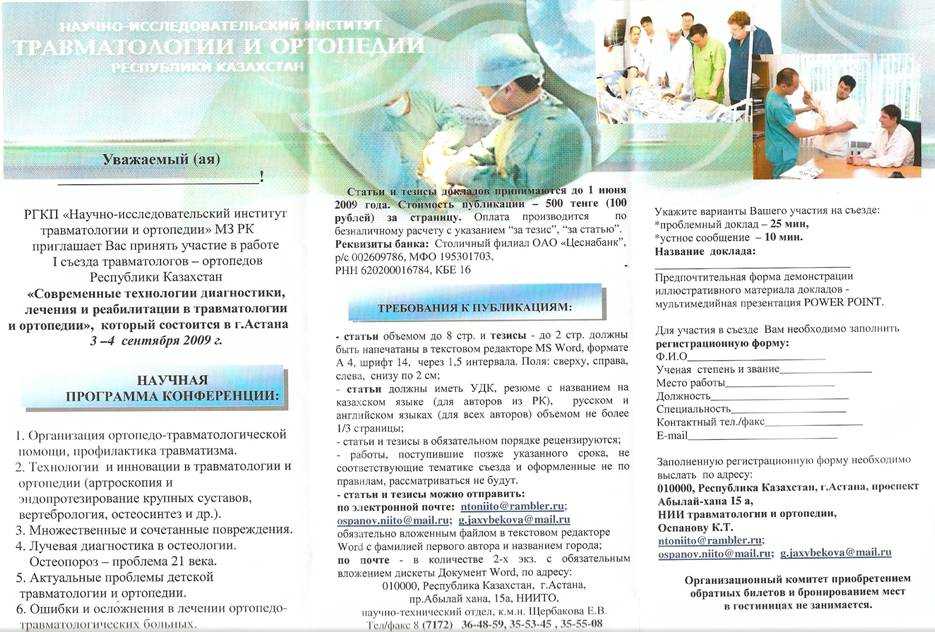 Уважаемые коллеги! Приглашаем Вас принять участие в работе I съезда травматологов-ортопедов Республики Казахстан < | >