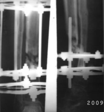 Уважаемые коллеги. Обратился б-ной 39лет, ДТП 8-мес назад, о/оскольчатый перелом костей правой голени, в ЦРБ произведена ПХО раны, остеосинтез спицами и проволкой, гипсовая повязка, со слов б-ного рана зажило первично, гипсовая повязка переложена несколько раз, но сращения не наступило, 2 мес назад КДО аппаратом Илизарова, срашения нет, после обратился к нам. Локально: признаков воспаления, лимфостаза нет, п/о рубец небольшой, сгибательная контрактура г/с сустава. Р-снимки прилагаются. Наш план.1. Перемонтаж аппарата, устранение смещения, остеотомия в/з б/берцовой кости с постепенным низведением до полной компрессии в обл ложного сустава. 2. БИОС с рассверливанием к/м канала. Уважаемые коллеги, помогите советом! Можеть быть сначала резекция концов л/с и потом низведение. или костная пластика? Или после завершения удлинения через какое время рекомендуется БИОС? С уважением Абдурашид.