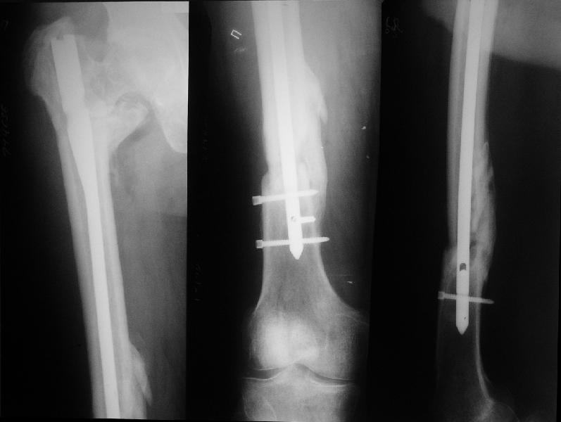 Уважаемые коллеги, помогите определиться с тактикой лечения. Больная, 62 года,жалуется на боли,неопорность левой ноги. Ходит с помощью костылей, укорочение ноги 3 см. Два года назад была оперирована кокой-то накостной пластиной, пластину удалили 4 мес назад. Вопрос такой: предлагать эндопротезирование или делать МОС (что-то по типу стержня Gamma)?За качество снимков извините, по данным МРТ - головка живая