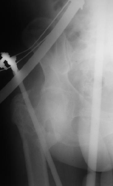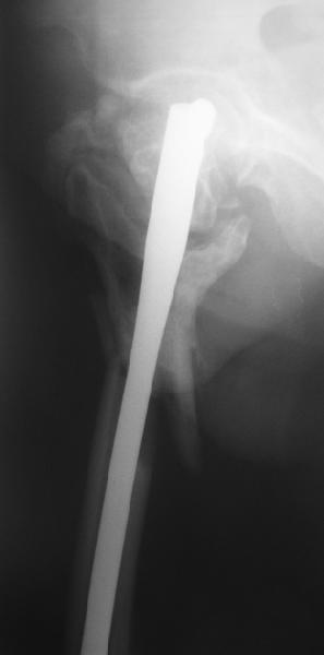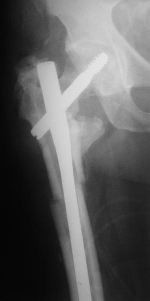 На прошлой неделе оперировали похожего пациента. 2 года после неудачного остеосинтеза PFN в другом регионе. После удаления остатков железа выявилось несращение вертельной области.