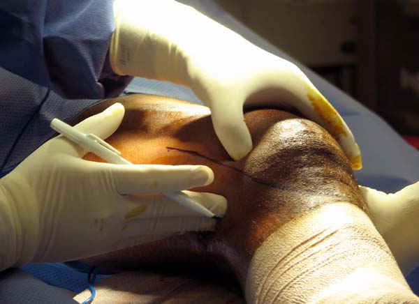 Сустав не дренировался, но медиально перед закрытием раны под фасцией уложен дренаж Hemovac, который удален через 24 часа.