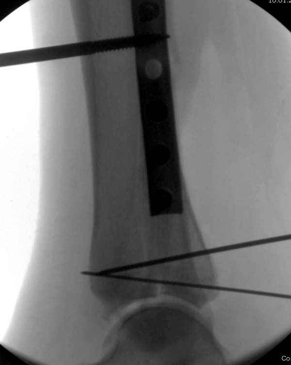 Без применения сложной конструкции, а обычными параллельными шурупами. Шурупы в 3.5 мм и дополнительно фиксация крючковидной пластиной, сделанной из 3.5 mm semitubular пластиной, Butress или аntiglade фиксация.