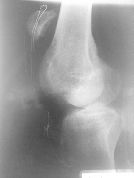 за бугристость и надколенник. Если стянуть не удается,аутопластика лоскутом широкой фасции или (если пациент потянет материально)готовым трансплантатом *tutoplast*.