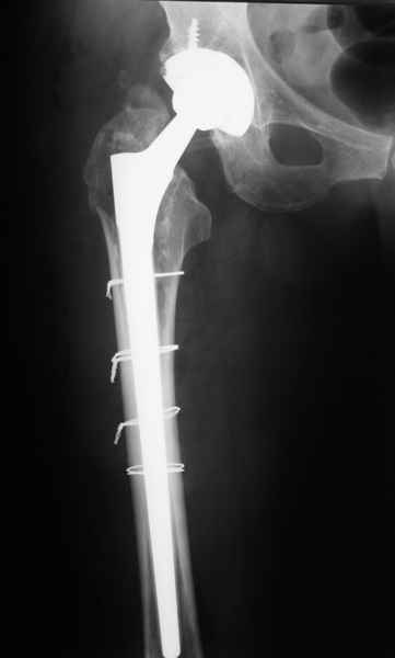 2. Применение ножки дистальной фиксации, мы отдаем предпочтение ножке Вагнера с фиксацией проксимального отдела на ножке. Более травматичное вмешательство, но при стабильной фиксации ножки реабилитация идет в обычном режиме.