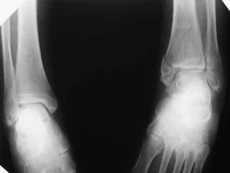 Я порассуждал о том, что у нее есть, видимо, системные проблемы с прочностью костей и это МОЖЕТ СУЩЕСТВЕННО ПОВЛИЯТЬ НА ВЫБОР МЕТОДА ОПЕРАТИВНОГО ЛЕЧЕНИЯ, вплоть до артродеза. Предложил начать с замены гипсовой повязки и репозиции для уменьшения отека, столь ее беспокоившего. Которую и выполнил. При попытке R-контроля выяснилось, что кабинет в данный момент обесточен на неопределенный срок. Отправив больную домой я, некорректно по форме, материализовал свои соображения в виде предыдущего сообщения на Форуме.