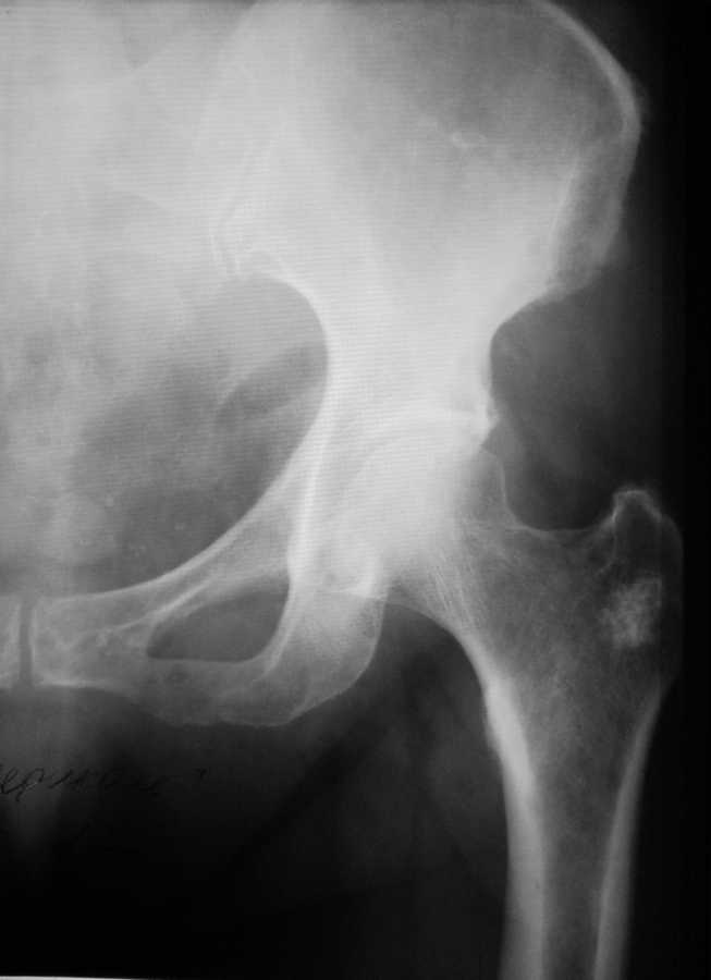Уважаемые коллеги! Прошу Вас помощи по поводу ситуации, представленной на снимке левого Т/Б сустава. Пациентка 65 лет, рост около 165, вес около 90кг.Клинически боли в суставе при ходьбе.При пальпации болезненность в области вертела. Пассивные движения в суставе в полном объеме, безболезненны.