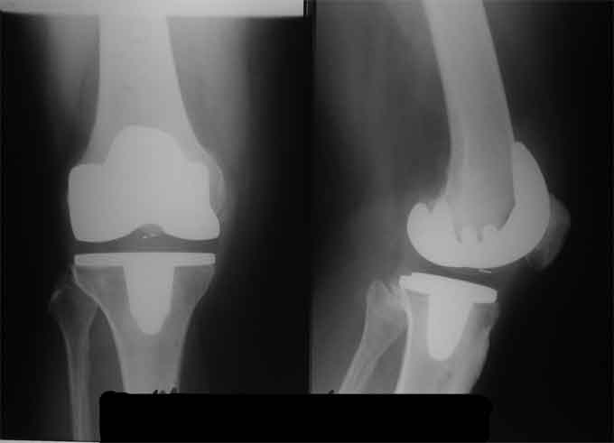 Оперирована пациентка 42 лет, избыточного веса. Выполнено б/ц протезированние коленного сустава эндопротезом LCS. Послеоперационный период гладкий, в срок 2 мес. после операции объем движений удовлетворительный, сгибание до острого угла, разгибание полное. В 3,5 мес. во время падения подвернула ногу, после чего появилась. клиника медиолатеральной нестабильности. В течении 3 недель фиксация в туторе. При повторном осмотре жалобы на дискомфорт в коленном суставе, «щелканье», неустойчивость в суставе. Вопросы/варианты дальнейшей тактики лечения пациентки.