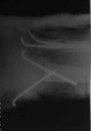 Во время операции, после укорочении костей предплечья и репозиции , кисть оказался в положение сгибания где-то под углом 15гр., поэтому фиксация произведена под 15гр. экстензии.