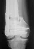 Больной, 30 лет, высокоэнергетическая травма 6 мес назад (базальный перелом шейки бедра + перелом дистального метаэпифиза бедра на той же ноге по типу 33-С2). Практически сразу же был произведен МОС шейки системой DHS (Synthes), через две недели - МОС дист.отдела бедра системой LISS (Synthes)плюс костная пластика с крыла подзвдошной кости.