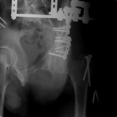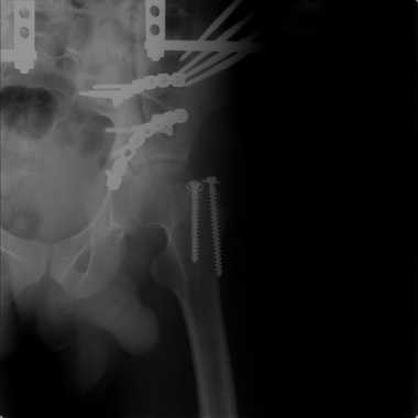 Внутренняя фиксация получилась достаточно стабильная.А передняя рама наложена с целью дополнительной фиксации для нейтрализации мышц прикрепляющихся к крылу подвздошной кости, и исключить возможное расшатывание и возникнование нестабильности внутрених фиксаторов( уж очень большая нагрузка на эти 2 пластины).На открытом этапе операции мобилизовали только часть линии всего перелома( около 1/4 части начиная от свода и проксимально), а остальная часть находится в рубце и патологическая подвижность в ней есть хоть и не выражена) А о ранней нагрузке никто и не думал. А как на ваш взгляд, в какие сроки в такой ситуации разрешить полную нагрузку? Я считаю, что только при сращении перелома, подвержденные лучше бы КТ
