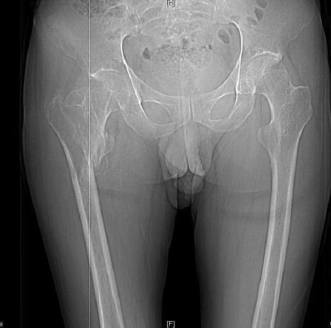 Доброго времени суток, уважаемые коллеги! Больному 45 лет. Лечили в сельской больнице на скелетном вытяжении 6 нед. по поводу межвертельного перелома бедренной кости с последующим наложением кокситной повязки еще на 2 мес.