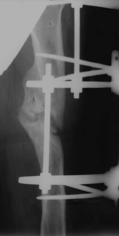 Сегодня появился у нас этот пациент. В аппарате он провел уже почти 2,5 года! И все это время такого рода обнадеживающие соображения и были - а вот давай такую компрессию сделаем, и станет тебе счастье... этакий перемонтаж, и все будет хорошо... немного дистракции... а потом опять компрессии...