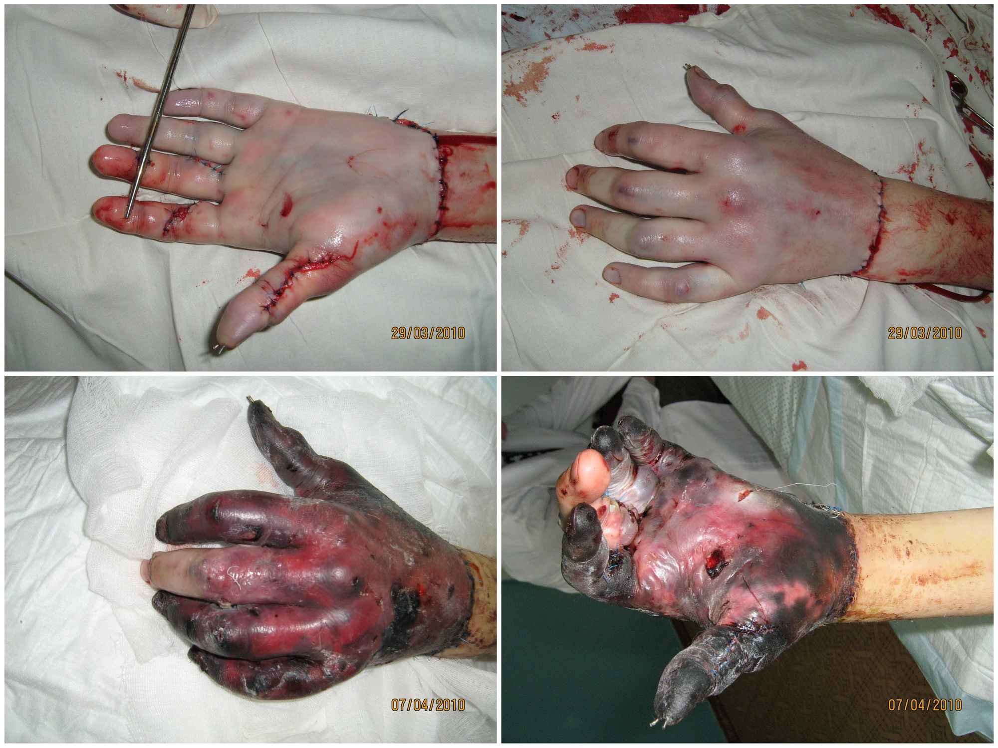 Судя по последним фотографиям, дело вовсю идет к ампутации кисти :(