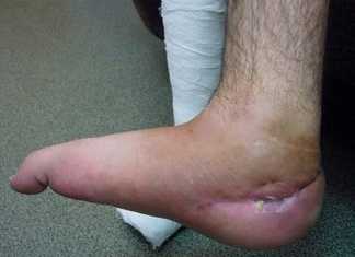 течение двух недель фликтены сменились некрозом с развитием тотального остеомиелита пяточной кости. Был вариант резкции пятки, санации, длительного лечения и пр.