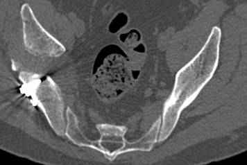 итак, второй вариант: высокий двухколонный с вовлечением КПС... Ни одно из основных повреждений не репонировано, кроме задней стенки. Скорее всего попытка реконструкции вертлуги сейчас будет очень травматичной и не очень эфективной, т.е. вероятный риск более значим, чем ожидаемая польза... Лучше подождать, и потом сразу эндопротез