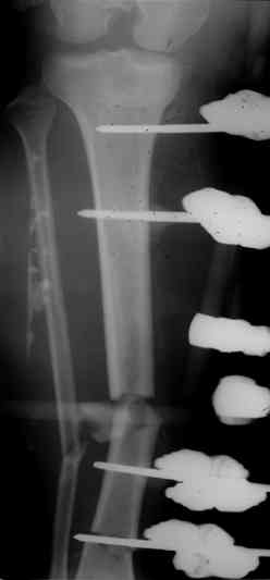 Вчера перешли с аппаратов на стежни с аб покрытием на правом бедре и левой голени.