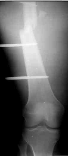 > Выполена резекция бедренной кости 9 см