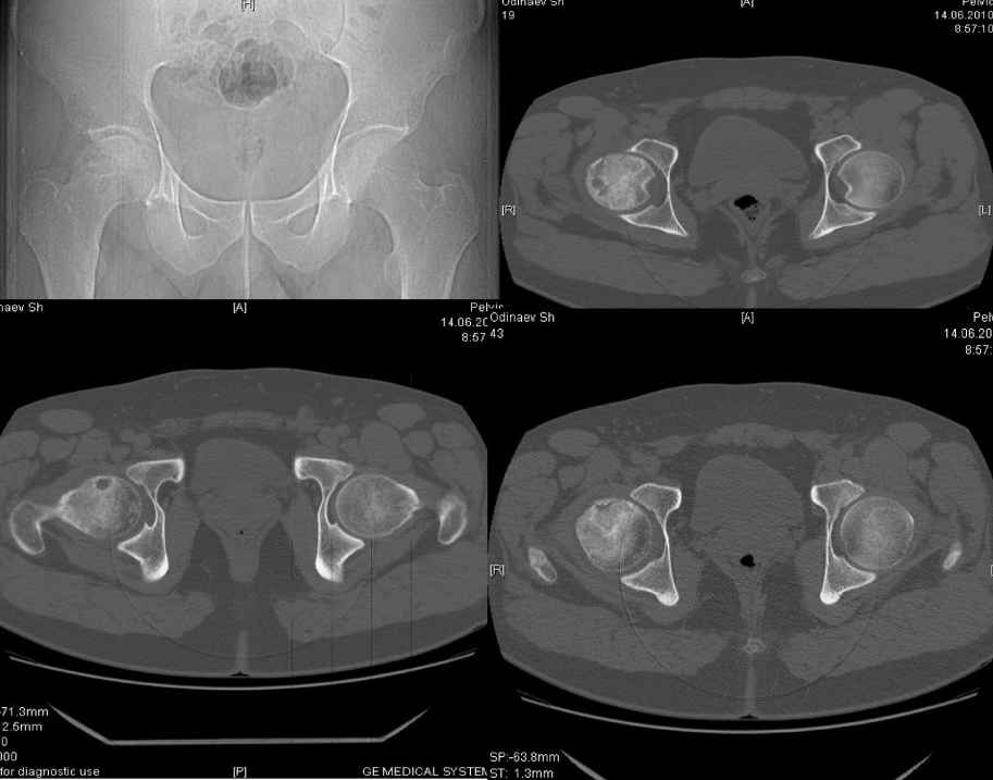 четкий очаг деструкции в головке бедра. возможно, имеет смысл уточнить этиологию этого процесса, т.к. при некоторых состояниях консервативная терапия противопоказана. сцинтиграфия? (желательно 3-х фазная)