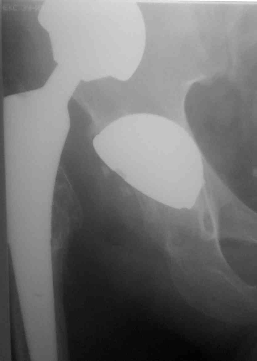 Пациент 40 лет, оперирован в апреле 2009. вывих в мае 2009г. За медпомощью не обращался. попыток устранения вывиха не было. ходит на костылях без опоры на конечность.
