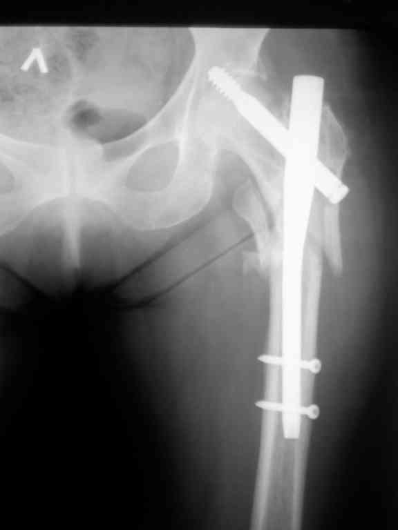 3. Могу подвергнуться критике, но мне кажется, вполне достаточно будет убрать шеечный винт. Под контролем ЭОП убедиться, что подвижности в месте перелома нет и на этом ограничиться.