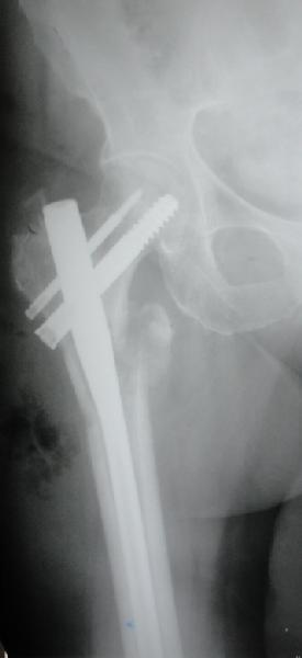 Здраствуйте. По данному снимку видно 2-а основных момента которые привели к протрузии винта в вертлужную впадину: 1) шеечный винт дистальной поверхностью наружнего края "зацепился" за латеральный кортикал бедра, это не дало сработать динамической системе гвоздь-винт. 2) лучьше шеечный винт проводить ближе к дуге Адамса, там болееплотная костная ткань. Решенее: как подготовка к эндопротезированию, реостеосинтез, можно такой же системой, но с учетом упомянутых моментов, максимальное безнагрузочное ЛФК (без боли).