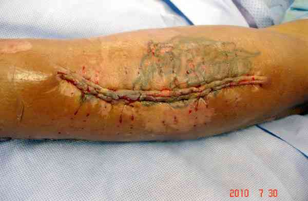 На фото результат от Derma Closure, аппарата, предназначенного для трудно закрываемых дефектов кожных покровов.