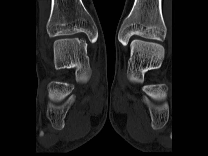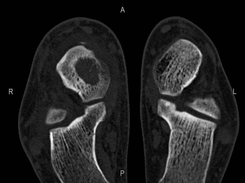 Уважаемые коллеги, обратился за помощью пациент, мужчина, 25 лет. С жалобами на болевой синдром в области голеностопного сустава и среднем отделе стопы. Травму отрицает. Со слов, болевой синдром в течении 1 года. Последние 1-1.5 мес периодически вынужден пользоваться костылями. После ограничения нагрузки боли уменьшаются.Соматически здоров. До появления болей активно занимался рукопашным боем. На СКТ картина рассекающего остеохондрита блока таранной кости, киста шейки таранной кости с признаками импрессии суставной поверхности. А также - разрастания переднего края б\берцовой кости сопровождающиеся клиникой импиджмент синдрома. Предполагаемый план лечения- удаление свободного фрагмента суставного хряща из трансмаллеолярного доступа с рассверливанием поверхности дефекта, кюретаж кисты шейки с заполнением полости биокомпозитом + дебридмент переднего отдела голеностопного сустава. Прошу высказать своё мнение, за и против, предполагаемого плана лечения. А также по возможности ответить на вопросы: 1. Есть ли необходимость в улучшении васкуляризации таранной кости (например подтаранный артродез). 2. Учитывая планируемое применение биокомпозитного цемента целесообразно ли заполнение им дефекта блока таранной кости с моделированием края суставной поверхности.