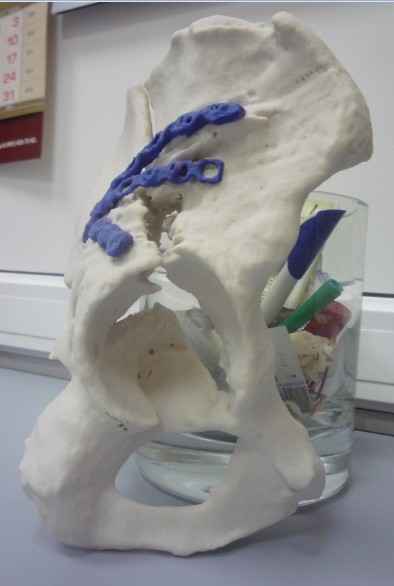 Я выкладываю 3D реконструированные одного из перелома тазовой кости, которая облегчает понимание имеющейся деформации. Его исполнили в США,по заказу доктора Джолдаса Кулджанова. К сожалению в России пока их не выполняют, а было бы хорошо, на них можно тренироваться до операции и пластины заранее адаптировать на макете и потом уже стерилизовать.