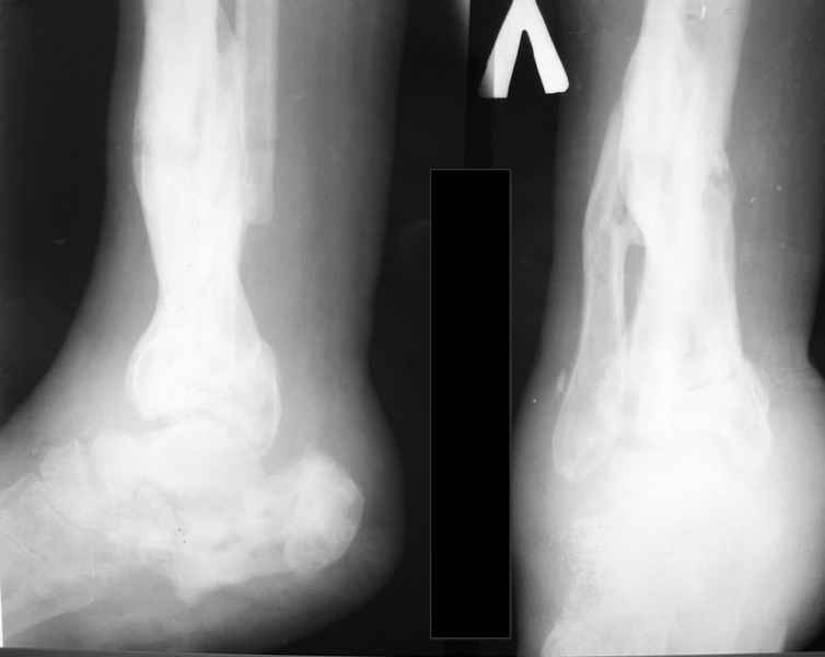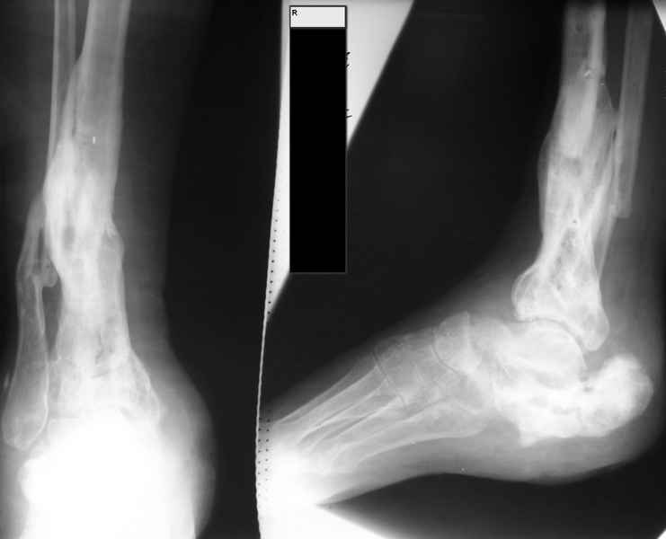 На первый взгляд возникает мысль о панартродезе стопы.