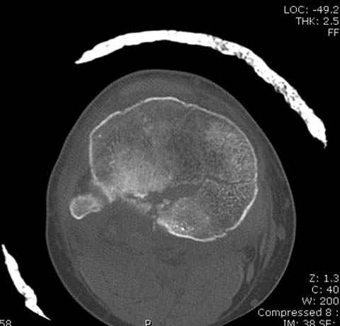 Пациенту сделали КТ - ухитрились сделать на шине Белера (не давал положить прямую ногу) - срезали передний отдел. Планируется на пятницу (24.12) на операцию - синтез длинной мыщелковой LCP-пластиной Synthes :). Отек ближе к слову умеренный (окружность голени +4 см по сравнению со здоровой). КТ и снимок на вытяжении прилагаются.
