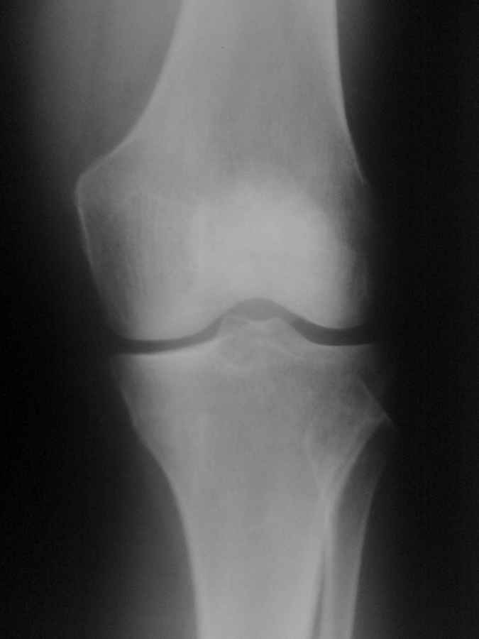 На контрольных осмотрах через 2 недели 1 месяц, 1,5 месяца без жалоб и объективных осложнений - выпота в суставе нет, отека нет и т.д. Пациентка довольна выполненной операцией. Через 2 месяца после операции на фоне "полного здоровья" утром резкие боли в области внутреннего мыщелка бедренной кости. На осмотре - выпота в суставе нет, движения в полном объеме, умеренно болезненно разгибание, локальная болезненность в одной точке в проекции внутреннего мыщелка бедренной кости - буквально от прикосновения кричит, участок парестезии, гиперемии нет, температурной реакции нет, в анализах - возрастная норма. УЗДГ вен без патологии. МРТ поясничного отдела позвоночника (по направлению невролога - грыжи L5-S1), на ЭНМГ - проводимость в полном объеме, не нарушена. Помогите, пожалуйста, что это такое и как с ним бороться? В моей практике( 17 лет) это впервые.