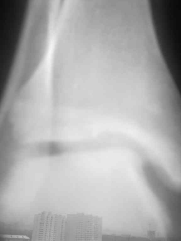 Импактированный перелом переднего края Д.Е.М. большеберцевой кости. < | >