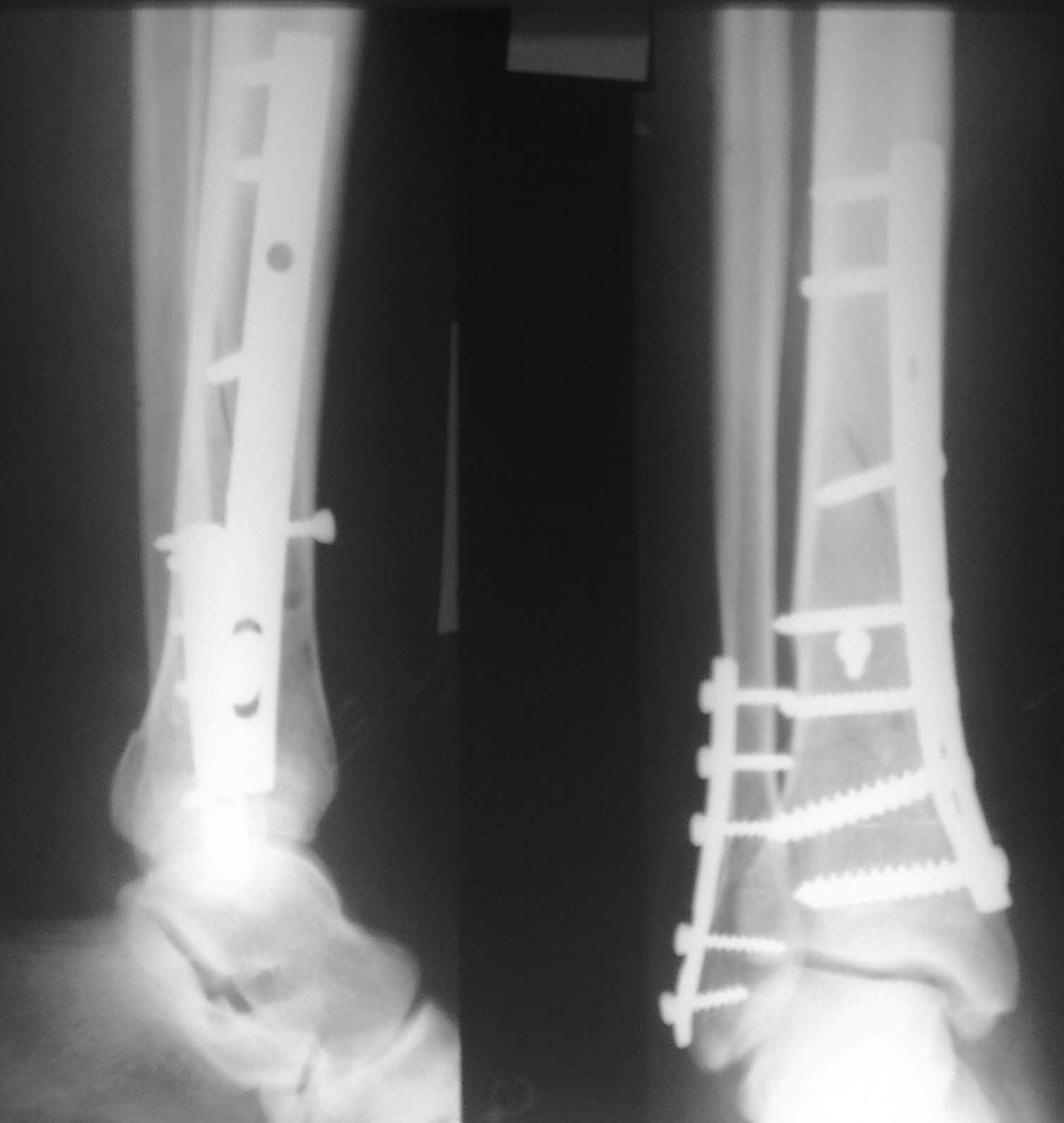 Разрыв межкостной мембраны между берцовыми костями был выявлен в зоне оперативного вмешвтельства на малоберцовой кости выше ее перелома. Логично было бы предположить, что он (разрыв) продолжается до проксимального синдесмоза голени. Но передняя межберцовая связка оказалась целой, поэтому ДМС оказался стабилен.