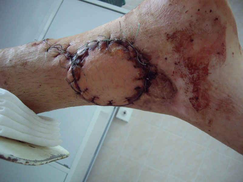 Совершенно верно был такой Пациент парень 29 лет. Только не 2 года а 4 года назад. Лечение растянулось на 2 этапа. На момент сообщения наложил окончатую гипсовую повязку, мазевые повязки, грануляции, закрыл свободной кожной пластикой. Через 2 месяца рана закрылась рубцом, гипс снял отправил на ЛФК. В течение года появлялся дважды - все ОК, нестабильности в суставе не было. Пациент работник УВД - его даже не комисовали. Обратился через 2 года после повторной травмы (опять мотоцикл) - открылся свищ в области медиальной лодыжки. Проведена операция - санация, рубец иссечен, пластика суральным лоскутом - состоятельная. Аппарат Илизарова на 2 месяца. Аппарат демонтировали опять ЛФК - Нестабильности в суставе нет, до сих пор трудится в органах... Опять подумывает о покупке мотоцикла.