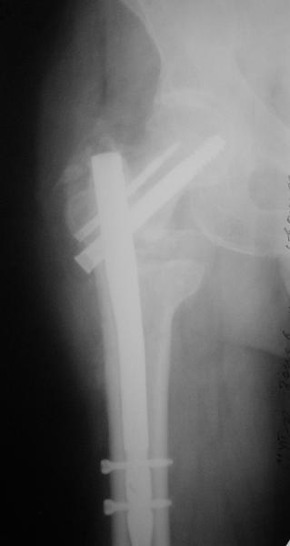 Дистракция позволит улучшить шеечно-диафизарный угол. Фиксировать технически проще пластиной, оптимально 130-градусной. Можно и с другим углом, только спланируйте тщательно, как должен быть направлен шеечный элемент, чтобы не оставить варус.