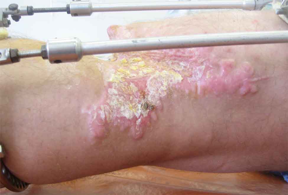 Какую тактику лечения предпочесть? Планирую замещение костного дефекта цементом с а/б, укрыть латеральной головкой икроножной мышцы, на нее кожную пластику. Опыта подобных операций нет, переправить пациентка в другое, более сведущее ЛПУ не получается (ко всему прочему пациент абсолютно без денег, производство исчезло). Предпочесть другие варианты, какие? Помогите с материалами по теме, книги, презентации, видео). Master technic b color atlas у меня есть). Заранее благодарен.