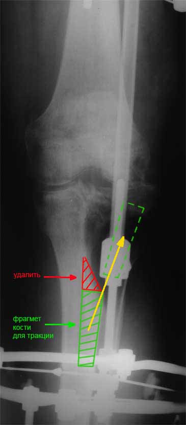 >и выполнил бы краевой отщеп большеберцовой кости для его дистракции аппаратом в проксимальном направлении