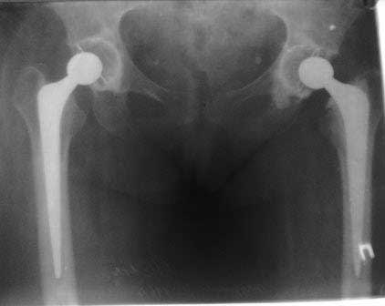 В конце 2008 года отметил боли в правой паховой области при опоре на правую ногу. На рентген снимках таза с тазобедренными суставами явных признаков нестабильности вертлужного компонента не обнаружено. В 2009 году нейрохирурги его "успешно" прооперировали на L\3-\4 связывая болевой синдром в правой паховой области с наличием грыжи указанного межпозвонкового диска. Состояние только ухудшилось, больной уже не мог долго сидеть, боль прогрессировала . Его в 2009 и 2010 годах смотрел ортопед, делались рентгенснимки, но почему то приходили к выводу что эндопротез справа стабилен. В марте 2011 года я впервые увидел его, через одну неделю после этого был прооперирован. На операции вертлужный компонент при упоре на него инструментом прокручивался во впадине и без труда был извлечен.